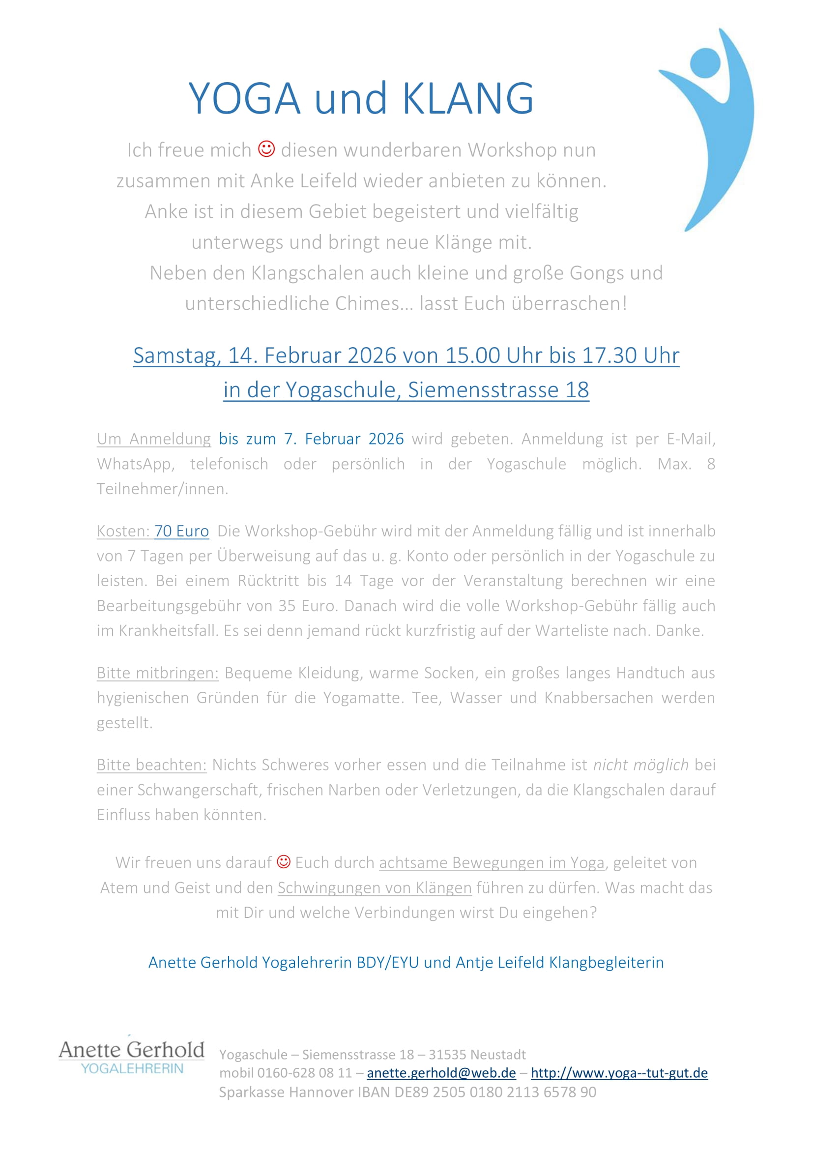 Ich freue mich darauf, Sie in meinem Yoga-Kurs kennenzulernen. ==> weiter